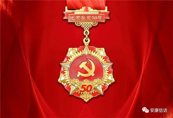 “光榮在黨50年”紀(jì)念章通徑50毫米,材質(zhì)為紫銅、黃銅和鋅合金,以黨徽、五角星、旗幟、豐碑、向日葵、光榮花、光芒等為主要元素。其中黨徽象征黨的領(lǐng)導(dǎo)核心地位和黨員信念堅定、對黨忠誠;豐碑寓意黨的光輝歷程和豐功偉績;向日葵寓意全黨全國各族人民緊密團(tuán)結(jié)在黨中央周圍;光芒象征黨的光輝照耀;五角星代表薪火相傳;光榮花寓意繁榮盛世、國泰民安和褒獎榮耀;旗幟象征共產(chǎn)主義崇高理想與事業(yè)永續(xù)。