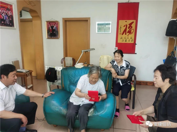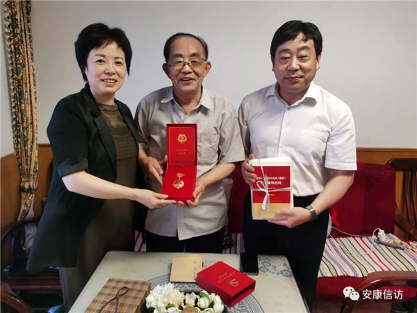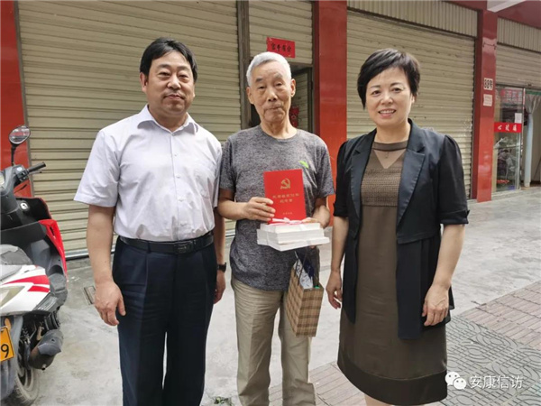 在黨的百年華誕即將到來之際,6月21日,市政府副秘書長、市信訪局局長馬霞,市信訪局黨組成員、正縣級督查專員魯延貴來到市信訪局三名退休老黨員家中,為他們頒發(fā)“光榮在黨50年”紀(jì)念章,送去黨史學(xué)習(xí)教育系列書籍和祝福。