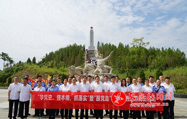 在牛蹄嶺戰(zhàn)斗遺址紀(jì)念碑前,全體黨員莊嚴(yán)肅立默哀,重溫入黨誓詞。大家跟隨著講解員的步伐,認(rèn)真閱讀碑文,參觀革命遺跡,詳細(xì)解了牛蹄嶺戰(zhàn)斗的歷史背景、戰(zhàn)略意義、戰(zhàn)斗過程,以及在戰(zhàn)斗中所涌現(xiàn)出來的感人事跡。