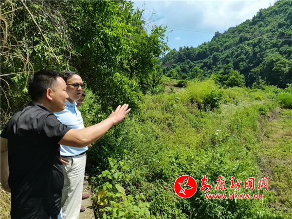 屈書記查看社區(qū)茶園,鼓勵(lì)要精心發(fā)展茶園建設(shè),增大村民經(jīng)濟(jì)收入。