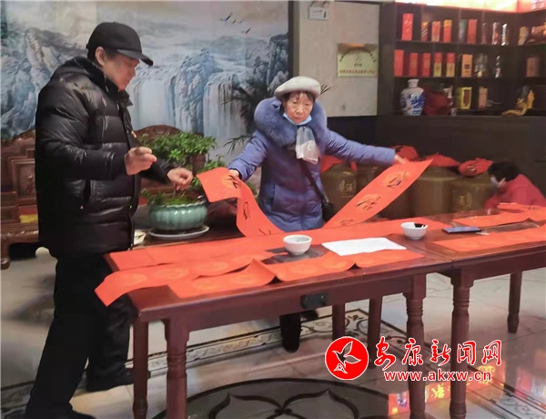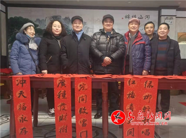 本網(wǎng)訊(通訊員 田虹)瑞雪紛飛,臘月尤寒。自1月20日至26日,安康市延安精神研究會(huì)組織部分會(huì)員采取集寫(xiě)分送或分寫(xiě)集送的方式,先后為安康市亦合安企業(yè)管理有限公司、平利縣新立人力資源管理公司、嵐皋縣瀛湖漢源漁業(yè)公司等會(huì)員單位及職工,神河鎮(zhèn)敬老院及街道社區(qū)群眾送春聯(lián)送溫暖。一幅幅鮮紅的楹聯(lián)為即將來(lái)臨的虎年春節(jié)增添了濃濃暖意。