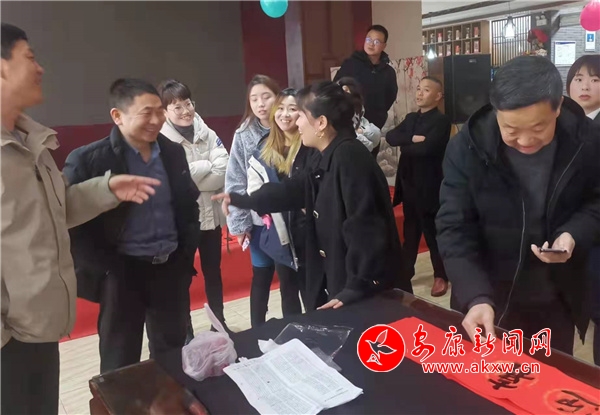 1月22日下午研究會(huì)一行來(lái)到平利縣新立人力資源公司,現(xiàn)場(chǎng)為企業(yè)職工擬聯(lián)即書(shū),并開(kāi)展聯(lián)誼活動(dòng)。"山安水安人自安,天安地安亦合安";“牛存厚德辭舊歲,虎振雄風(fēng)迎新立”“春臨化龍千山秀,福至女?huà)z萬(wàn)木春”……結(jié)合實(shí)際自擬聯(lián)語(yǔ),深受歡迎。