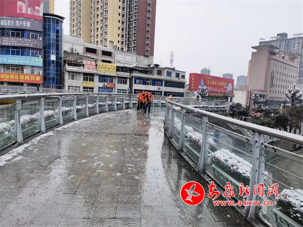 據(jù)了解,7日清晨,安康市市政園林處共投入人力40余人,融雪劑3噸,車輛10臺(tái),對(duì)城區(qū)雷神殿、馬坎天橋、漢江一橋、三橋、南環(huán)干道陳家溝大橋及部分公園集中開展除雪融冰工作。