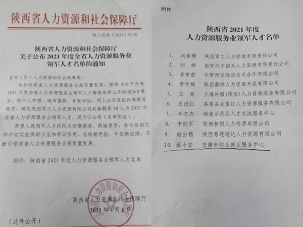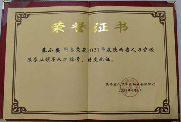 原標(biāo)題:蔡小安同志榮獲”2021年度全省人力資源服務(wù)業(yè)領(lǐng)軍人才”稱號