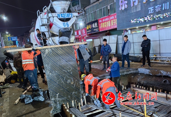 “必須爭分奪秒搶修!”安康市市政園林處黨委副書記、副處長廖邦友當(dāng)日下午現(xiàn)場指揮調(diào)度,協(xié)調(diào)人員、機械、物資力量開展路面沉陷搶修工作。在道路現(xiàn)場,已協(xié)調(diào)并會同交警對該路段采取封閉措施,設(shè)置圍擋和警示牌,提醒車輛和行人繞行。安康市市政園林處道橋管護科組織20余名搶險工人連夜搶修。