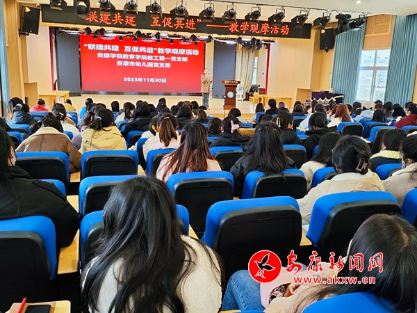 在開展教學(xué)觀摩研討交流活動中,安康市幼兒園6名教師為安康學(xué)院學(xué)前教育系350余名學(xué)生,進行了五大領(lǐng)域集體教學(xué)觀摩課展示。兩個黨支部20余名黨員教師,一起探討黨建品牌建設(shè)方面的工作思路,了解市幼兒園在學(xué)前教育理論指導(dǎo)方面的需求,并建立了黨支部共建教研交流群。