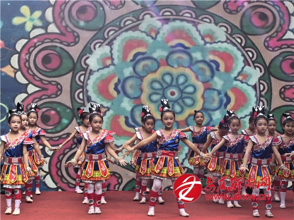 鼓樓小學(xué)的學(xué)生們表演的舞蹈《苗娃踏歌迎國慶》,以朝氣蓬勃的舞姿和天真爛漫的笑臉,踩著歡快的節(jié)拍,表達(dá)了少年兒童對祖國生日最可愛的祝福,展現(xiàn)了新時代安康少年積極向上的精神風(fēng)貌。