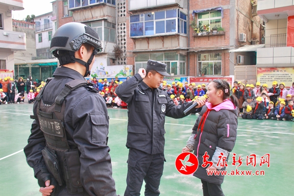 本網(wǎng)訊(記者 張喬 實(shí)習(xí)記者 雷文鈺)為進(jìn)一步宣傳普及校園安全知識(shí),提升小學(xué)生安全防范意識(shí)和反恐能力。12月20日,漢濱區(qū)紅旗小學(xué)邀請(qǐng)安康市公安局漢濱分局特警大隊(duì)的隊(duì)員們來(lái)到學(xué)校,給全校1000多名師生上了一堂別開(kāi)生面的安全防范教育課。為孩子宣講安全常識(shí),提高大家的安全意識(shí)。