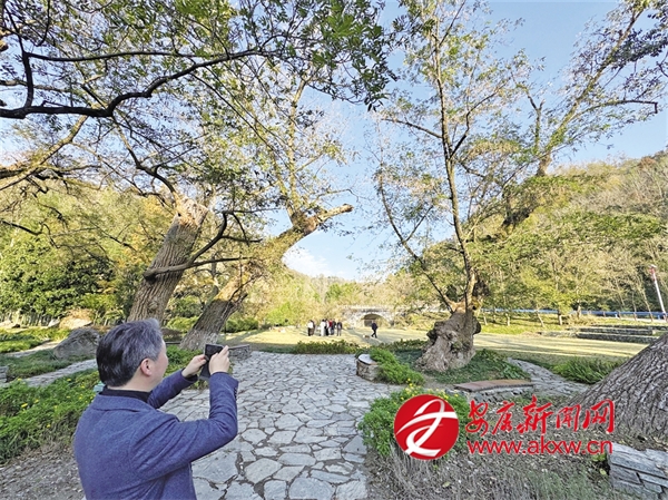 隨后采訪團驅(qū)車駛?cè)腚p嶂村,一眼看見高大的“麻柳”古樹。據(jù)悉,這些古樹一共16棵,樹齡約500年。古樹的枝干或挺拔如衛(wèi)士,或斜臥似老者,繁密的枝葉織成巨傘,將整片草坪籠在樹蔭里。樹下游客紛紛舉起相機拍照,快門聲伴著歡聲笑語。