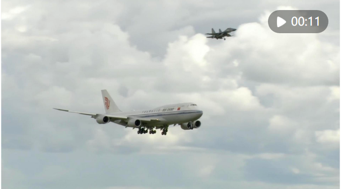 習(xí)近平乘坐的專機(jī)進(jìn)入哈薩克斯坦領(lǐng)空后,哈薩克斯坦空軍戰(zhàn)機(jī)升空護(hù)航。