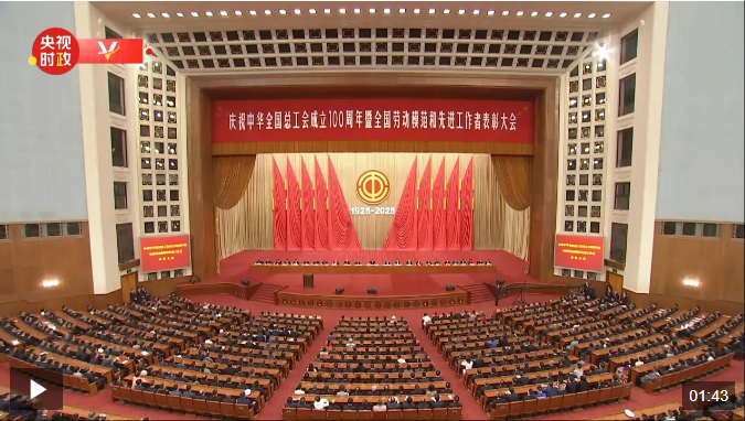 △視頻:慶祝中華全國(guó)總工會(huì)成立100周年暨全國(guó)勞動(dòng)模范和先進(jìn)工作者表彰大會(huì)隆重舉行