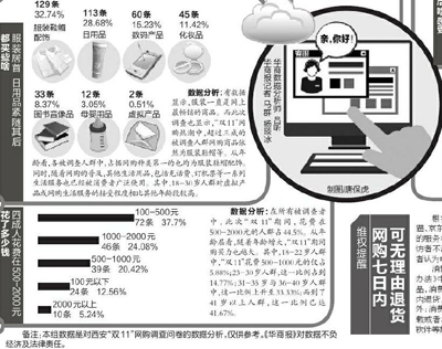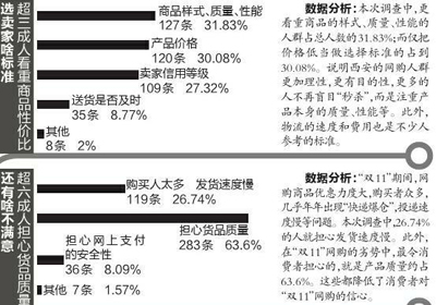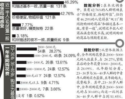 媒體對這些調(diào)查數(shù)據(jù)逐一分析。結(jié)果顯示,“雙11”期間,西安網(wǎng)購人群最愛買衣服,花費在500-2000元的人占44.5%。