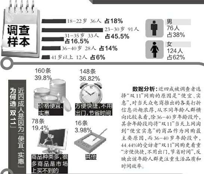 與此同時,在明確表示不參與“雙11”搶購的人群中,33.33%的人擔(dān)心商品質(zhì)量,22.22%的人表示“不想湊熱鬧。”