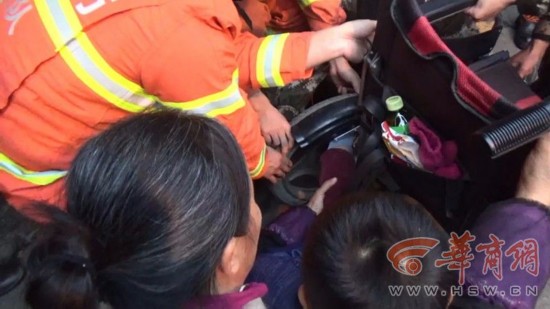 4日下午5時(shí)30分左右,漢中略陽(yáng)縣一個(gè)小男孩不慎將腳卡進(jìn)了鄰居大叔的輪椅中,周圍的人怎么也取不出來(lái),最終只能求救消防人員。
