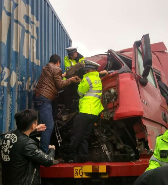 民警了解到,駕駛?cè)酥炷硺否{駛蘇G牌照重型半掛貨車從江蘇拉載百貨運(yùn)往蘭州,行徑福銀高速陜甘界段因大霧引發(fā)交通事故,從而造成同車乘坐人朱某登受傷被困車內(nèi)。駕駛?cè)酥炷硺繁硎,幸得咸陽高速交警果斷處置,受困傷員才得以及時(shí)脫險(xiǎn)。