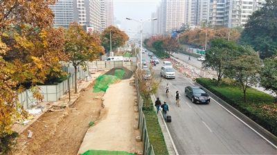 今年9月底,由于有關(guān)部門實(shí)施汽改水工程,高新路(科技四路至莊嚴(yán)巷段)西側(cè)非機(jī)動(dòng)車道及部分人行道被圍擋起來。由于施工沒能按時(shí)結(jié)束,竣工時(shí)間由最初的10月30日延至11月15日。然而,昨天上午記者在該路段看到,此處施工還是沒有如期結(jié)束,圍擋仍然存在。超期“服役”的圍擋,給該路段的交通造成一定程度影響。