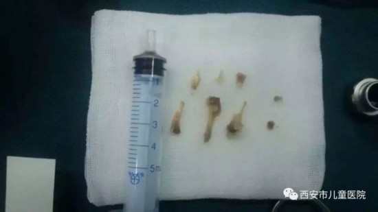 西安市兒童醫(yī)院耳鼻喉頭頸外科主任樊孟耘介紹說(shuō),當(dāng)時(shí)患兒來(lái)了之后,精神狀態(tài)不好,意識(shí)也不好,手術(shù)的過(guò)程中,發(fā)現(xiàn)這個(gè)異物是大半個(gè)西瓜子,仁和殼都有,它卡在了聲門下,就是呼吸道最狹窄的地方,所以孩子才會(huì)出現(xiàn)嚴(yán)重的呼吸困難。