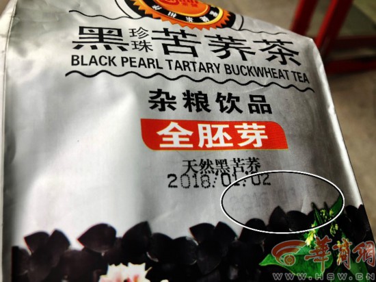 4月7日中午1點(diǎn)多,賀先生和友人一起在西影路華潤(rùn)萬(wàn)家超市閑逛時(shí),購(gòu)買(mǎi)了一些苦蕎茶,但賀先生卻發(fā)現(xiàn)了這些苦蕎茶包裝袋子上的異樣。