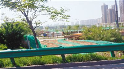 4月16日下午,記者從曲江收費(fèi)站駛?cè)氚咚俟罚谟杀毕蚰系能嚨郎峡吹,道路兩邊的綠化帶里有不少垃圾,主要以塑料袋居多。向南繼續(xù)行駛2公里左右,有一段綠化帶里的綠植缺失,黃土裸露,并沒有做好覆蓋處理。繼續(xù)行駛約3公里處,高速公路一側(cè)又出現(xiàn)了綠化帶里綠植缺失的現(xiàn)象,空地長度有10余米,缺失的地方黃土平整看似要進(jìn)行施工處理,但是此刻里面并無施工人員及機(jī)械,部分黃土也沒有遮蓋,在不遠(yuǎn)處的墻角還堆放著不少垃圾。而在這處空地的對面,是一處建筑工地,這個建筑工地也沒有動工,但是黃土卻做到了全覆蓋。相比之下,這處高速公路旁邊綠化帶的管理者有些懈怠了。