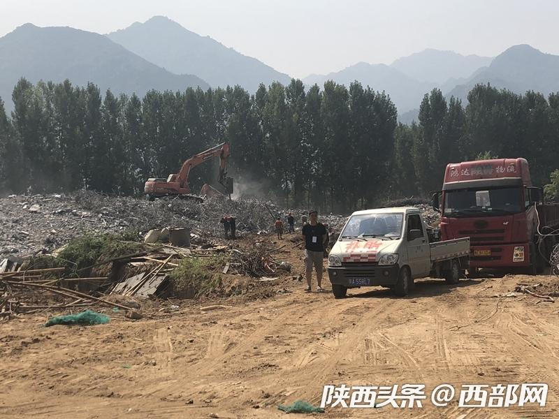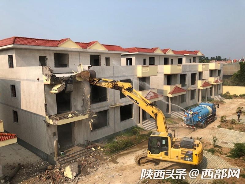 在灤鎮(zhèn)街道灃峪口村,一圈圍墻里的十棟別墅已經(jīng)拆掉了門窗,清理了內(nèi)部裝修,街道工作人員調(diào)集大型機械,集中人力,開始全力拆除主體部分。
