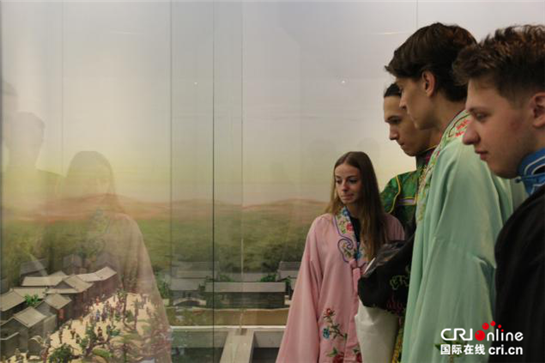 絲路青年觀看中國(guó)傳統(tǒng)民居微縮實(shí)景 (攝影 羅赟鵬)