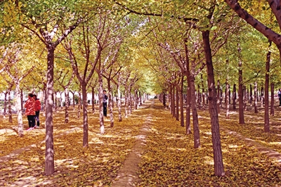 在大荔像這樣的銀杏林就有好幾處。銀杏樹下,不少人在擺著各種姿勢(shì)拍照,時(shí)而抓起一把樹葉順勢(shì)拋向空中,扇形葉子飄落而下,如金色蝴蝶漫天飛舞。(李世居 記者 楊晶)