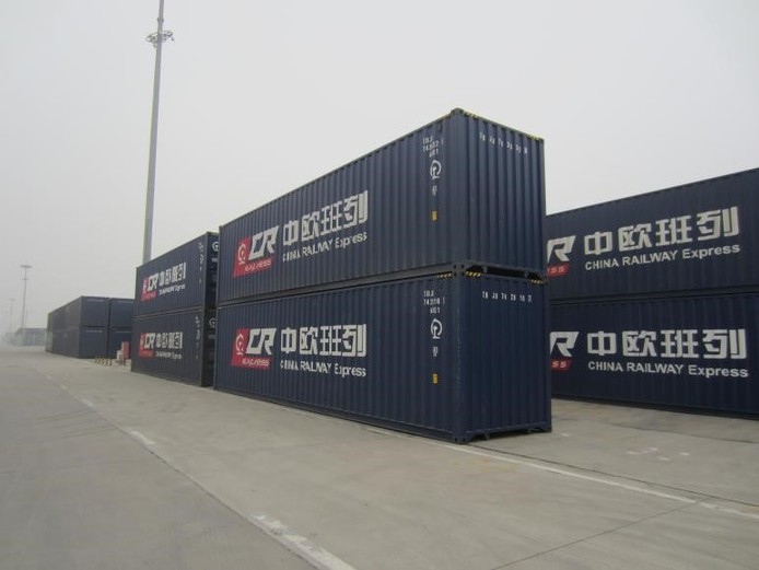 停放在西安港鐵路口岸的中歐班列集裝箱。新華網(wǎng)馬若虎攝