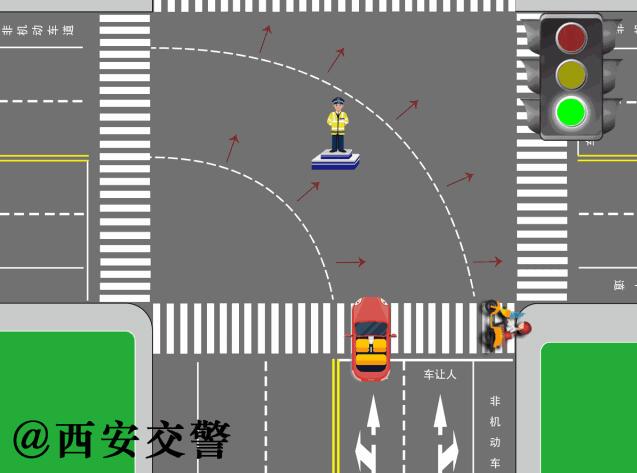 道路情況一:轉(zhuǎn)彎的非機動車通過有交通信號燈路口