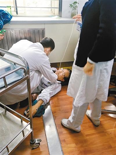 同事對(duì)暈倒的鄭波進(jìn)行搶救 醫(yī)院供圖