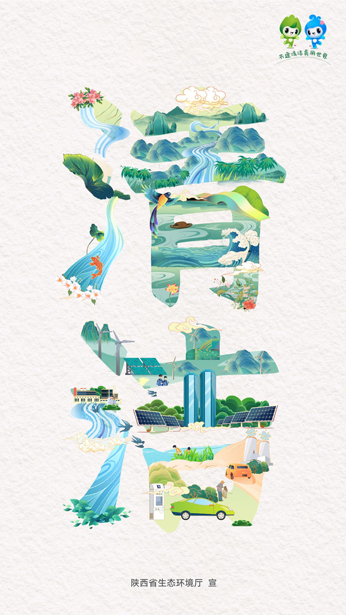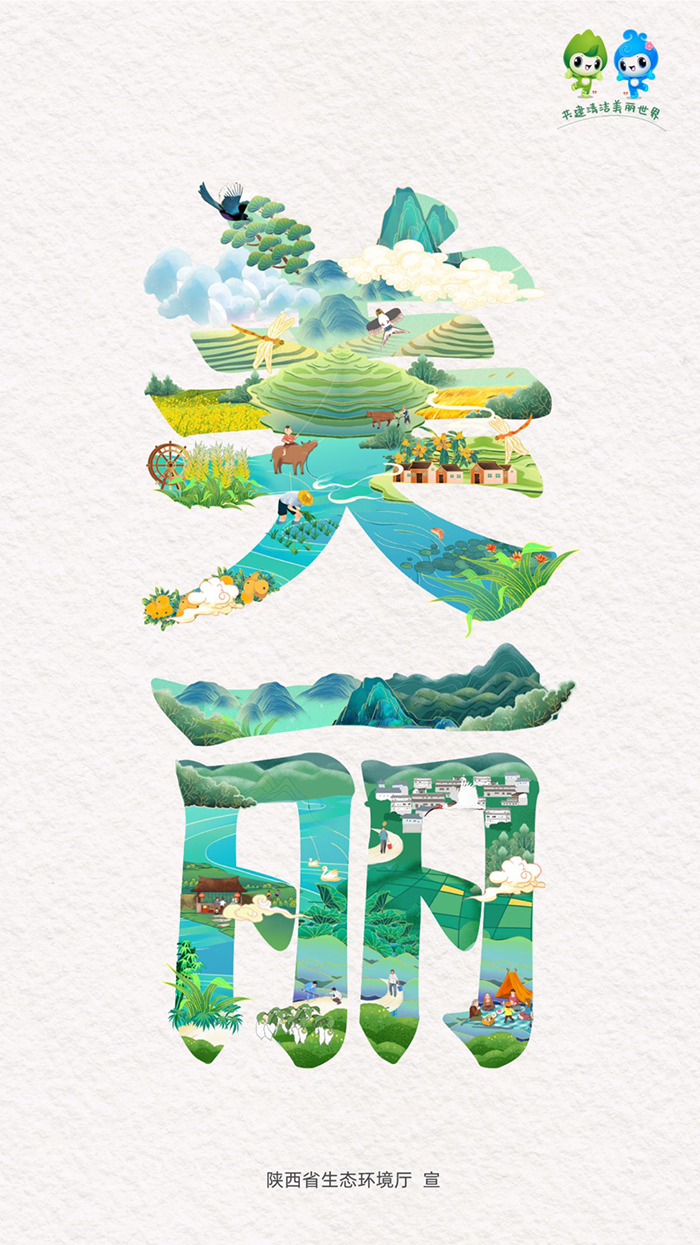 陜西省生態(tài)環(huán)境廳圍繞今年的“共建清潔美麗世界”主題制作了兩組原創(chuàng)系列海報,展示了“清潔美麗·錦繡陜西”的美好生態(tài)畫卷。