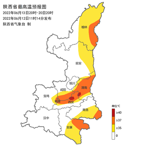預(yù)計(jì)未來(lái)十天陜西以晴到多云天氣為主,氣溫持續(xù)回升,13-15日關(guān)中東部局地有35~37℃高溫天氣,16-20日陜北東部、關(guān)中中東部、陜南東部有35℃以上高溫天氣,局地可達(dá)38~40℃。