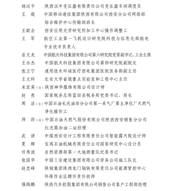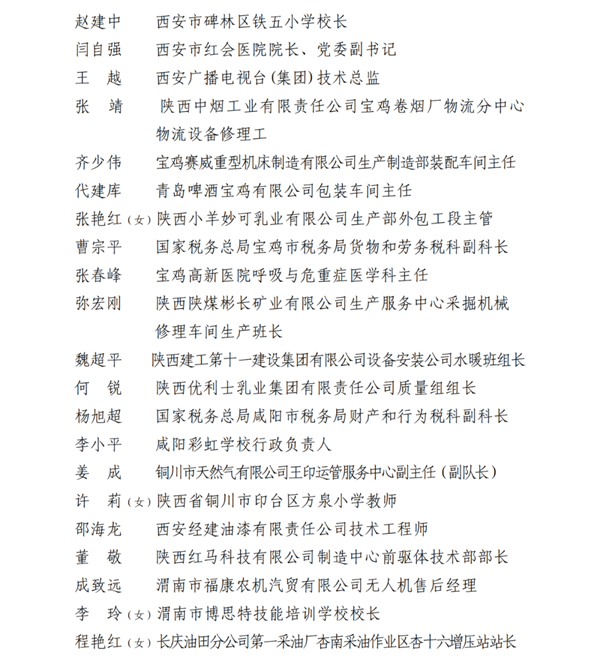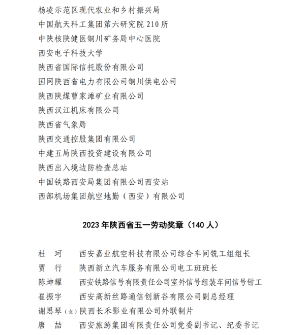2023年陜西省五一勞動(dòng)獎(jiǎng)名單