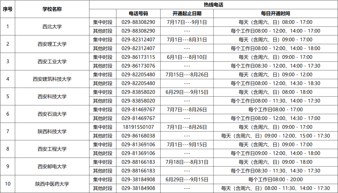 為幫助廣大學(xué)生和家長及時(shí)準(zhǔn)確了解國家資助政策,申請獲得相應(yīng)資助,陜西省地方高校本專科學(xué)段每年暑期均開通熱線電話。