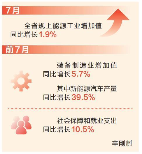 財(cái)政收支穩(wěn)定增長(zhǎng)。前7月,全省一般公共預(yù)算收入2198.84億元,同比增長(zhǎng)5.3%;一般公共預(yù)算支出4151.75億元,同比增長(zhǎng)3.2%。其中,社會(huì)保障和就業(yè)支出同比增長(zhǎng)10.5%,衛(wèi)生健康支出同比增長(zhǎng)6.3%,節(jié)能環(huán)保支出同比增長(zhǎng)4.3%。