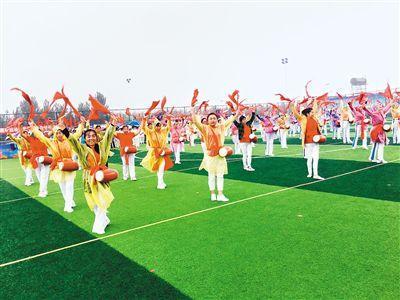 開幕式上精彩的健身腰鼓表演 趕豬入圈、摸石過河、顆粒歸倉……9月27日,高陵區(qū)耿鎮(zhèn)街道周家村生態(tài)休閑健身園熱鬧非凡,慶祝“中國農(nóng)民豐收節(jié)”金秋農(nóng)民趣味運……