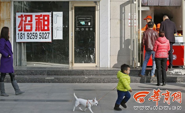 寒潮如期而至,2016年剛剛開始,古城西安已經(jīng)下了三場雪,溫度也越來越低。細(xì)心的你會發(fā)現(xiàn),走在大街小巷里,很多門面房是空的,而且空的店鋪都貼著招租、轉(zhuǎn)讓的……