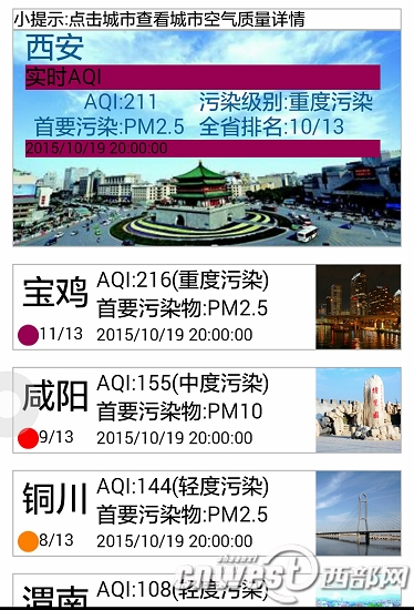 晚20時(shí)西安AQI指數(shù)達(dá)到211,首要污染物為PM2.5。西部網(wǎng)訊(記者 彭芬) “今天霧霾太嚴(yán)重了,開(kāi)車走在二環(huán)上,遠(yuǎn)一點(diǎn)的地方根本看不清!奔易∥靼彩形鹘嫉膹埮俊