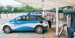 13日,在鳳城二路附近一處充電站,梁師傅在為自己的新能源電動(dòng)出租車(chē)充電。記者 張宇明 攝一大早從家里出門(mén),沿著市區(qū)前行,趁著歇腳的工夫,市民駕駛的電動(dòng)車(chē)便……