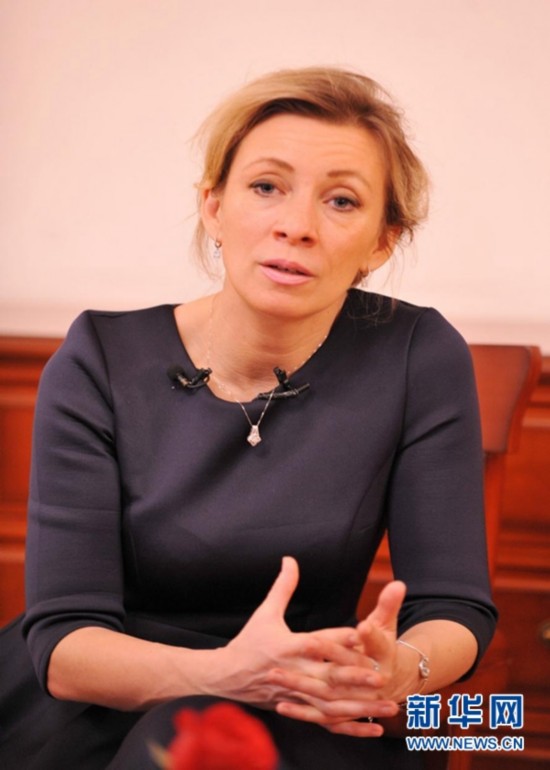 俄羅斯外交部新聞司司長(zhǎng)、新聞發(fā)言人扎哈羅娃接受采訪(fǎng)。新華網(wǎng)發(fā) 徐昕攝