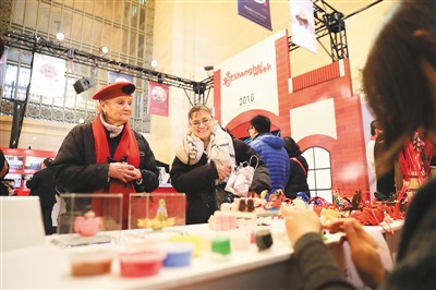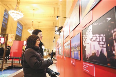 1月10日,“上海印象”非遺展和“魅力上!眻D片展亮相紐約大中央車站!皻g樂(lè)春節(jié)·上海文化周”系列活動(dòng)9日至12日在紐約舉行,包括上海電影周、上海電視展映周、“上海印象”非遺展、“魅力上!眻D片展、音樂(lè)劇場(chǎng)《霸王》以及上海大學(xué)生中華優(yōu)秀傳統(tǒng)文化海外展演活動(dòng)。(記者 王 迎攝)