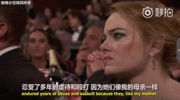 奧普拉將“這樣的日子已經(jīng)到頭了!”(their time is up)這句有力的話重復(fù)了三遍,眾明星起立鼓掌,全場被點(diǎn)燃了!