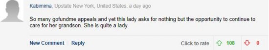 美國(guó)紐約的網(wǎng)友Kabimima:“眾籌平臺(tái)GoFundMe上有各種訴求,而這位女士卻沒(méi)有要求任何東西,只是想要能夠繼續(xù)送她的孫子上學(xué)。她真是了不起!