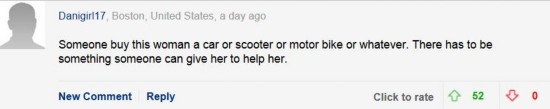 美國(guó)波士頓的網(wǎng)友danigiri17寫(xiě)道:“誰(shuí)來(lái)給她買輛車,或者至少買個(gè)小摩托車之類的?隙ㄓ腥四軌驇椭。”
