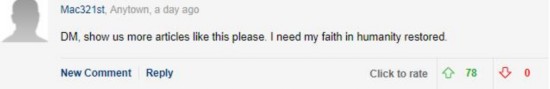網(wǎng)友Mac321st:“請(qǐng)多寫(xiě)些這樣的報(bào)道。他們的故事讓我重拾對(duì)人性的信心!