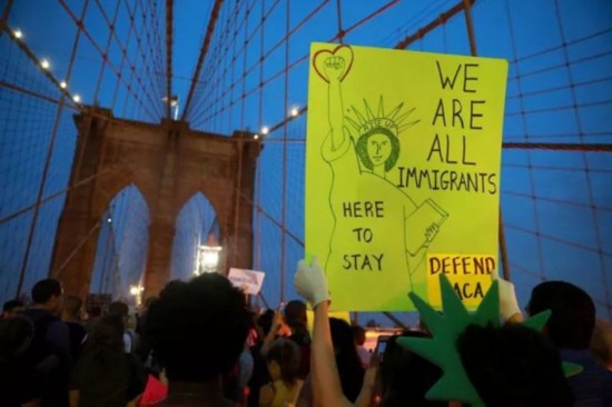 2017年9月5日,在美國紐約,民眾游行抗議總統(tǒng)特朗普廢除“童年抵美者暫緩遣返”計(jì)劃。(新華社/路透)