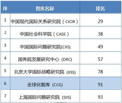 中國現(xiàn)代國際關系研究院、中國社會科學院等七個中國智庫上榜,其中,CCG上榜2017年全球頂級智庫百強榜單第91位,成為中國首個入選世界百強的社會智庫。Jf7安康新聞網(wǎng)