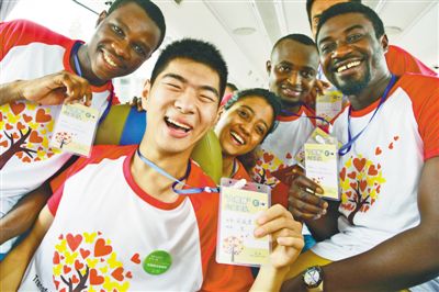 | 去年暑假,江蘇大學(xué)“大眼睛”和“桑梓心”支教團(tuán)的50多名中外大學(xué)生奔赴安徽金寨、貴州六盤水、江西吉安等地,開展為期一個(gè)月的公益支教活動(dòng),為貧困山區(qū)的留守兒童送去關(guān)懷。圖為中外大學(xué)生志愿者開心出征支教。人民視覺 |