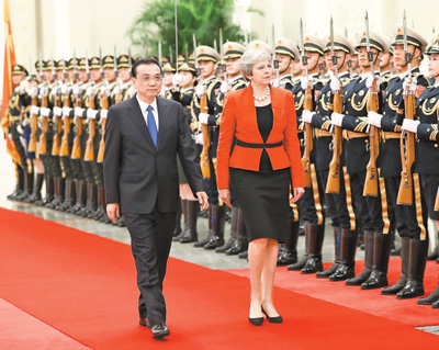 本報(bào)北京1月31日電 (記者趙成、杜一菲)國(guó)務(wù)院總理李克強(qiáng)1月31日下午在人民大會(huì)堂同來華進(jìn)行正式訪問的英國(guó)首相特雷莎·梅舉行中英總理年度會(huì)晤。
