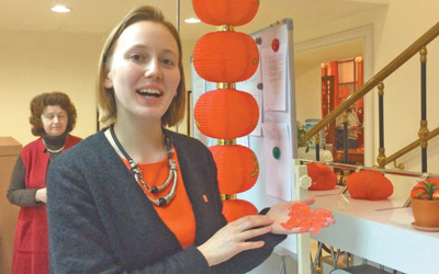 為了更好地傳遞這種信息,文化中心精心策劃了具有本地特色的春節(jié)特別活動。位于莫斯科紅場旁的大型百貨商場“古姆”,是俄羅斯最負(fù)盛名的高檔商場,從2月8日起,商場進入了“春節(jié)月”,邀請著名室內(nèi)裝飾大師,巧妙地將中國福娃與俄羅斯套娃、中國喜蛋與俄羅斯彩蛋等中俄節(jié)日文化元素結(jié)合在一起。長廊上,極具中國特色的“紅包”樹掛,讓人流連忘返的精品刺繡展品,充滿中國年味兒的民間藝術(shù)糖畫、剪紙,色香味俱全的中國美食,以及商場里循環(huán)播放的“恭喜發(fā)財”中國新年歌,讓中國春節(jié)走進了當(dāng)?shù)匕傩盏纳钊ΑF穱L中華美食是春節(jié)期間最受外國人歡迎的一個文化活動,但這次玩出了“新花樣”——與俄羅斯總廚協(xié)會合作,舉辦中俄美食之夜,由中俄兩方的廚師團隊采用相同食材做出不同菜品,由媒體記者、美食家和用餐客人共同品鑒。