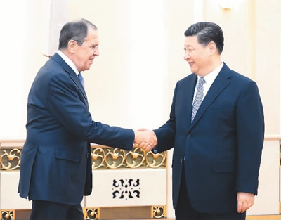 國(guó)家主席習(xí)近平23日在人民大會(huì)堂會(huì)見(jiàn)俄羅斯外長(zhǎng)拉夫羅夫。